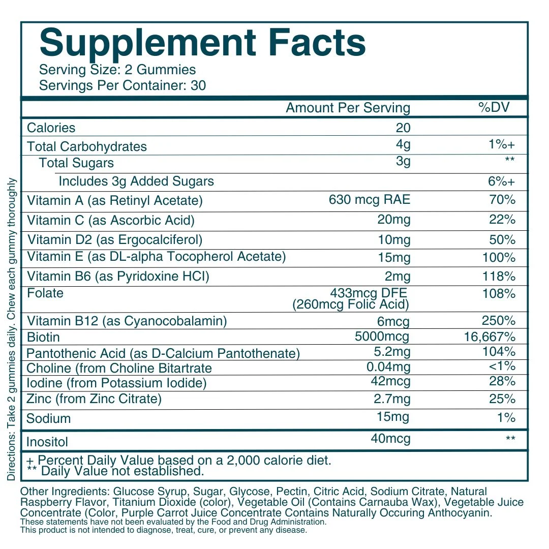 Each gummy contains a balanced blend of vitamins and minerals designed to nourish your body and support natural beauty from within.